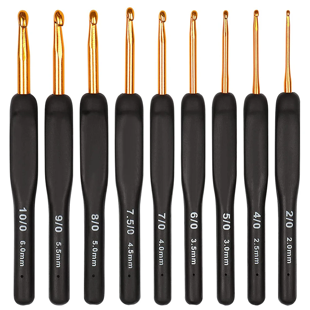 This 9-piece black ergonomic crochet hook set is specially designed for comfort, making it an ideal choice for those with arthritis or who crochet for extended periods. Each hook in the set ranges from 2.0mm to 6.0mm, providing versatile options for various yarn weights and project types. The soft, non-slip grips on these crochet hooks help reduce strain on your hands and fingers, ensuring a firm and comfortable hold, even during long sessions. Durable and lightweight, this set offers the perfect blend of quality, comfort, and style for both beginner and seasoned knitters and crocheters alike