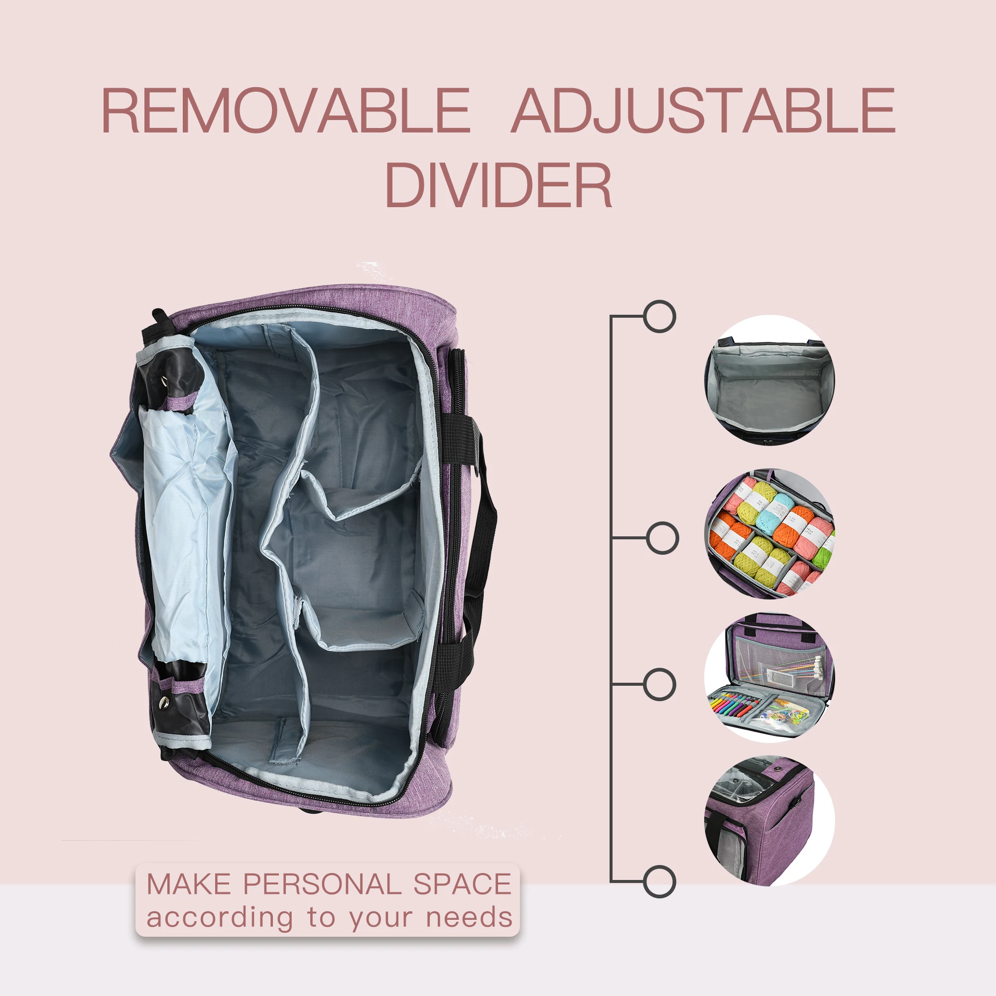 - Inner Divider: With an included inner divider, you can keep your supplies neatly organized and separated, preventing tangles and making it easy to find your crochet hooks, knitting needles, and other essentials quickly.